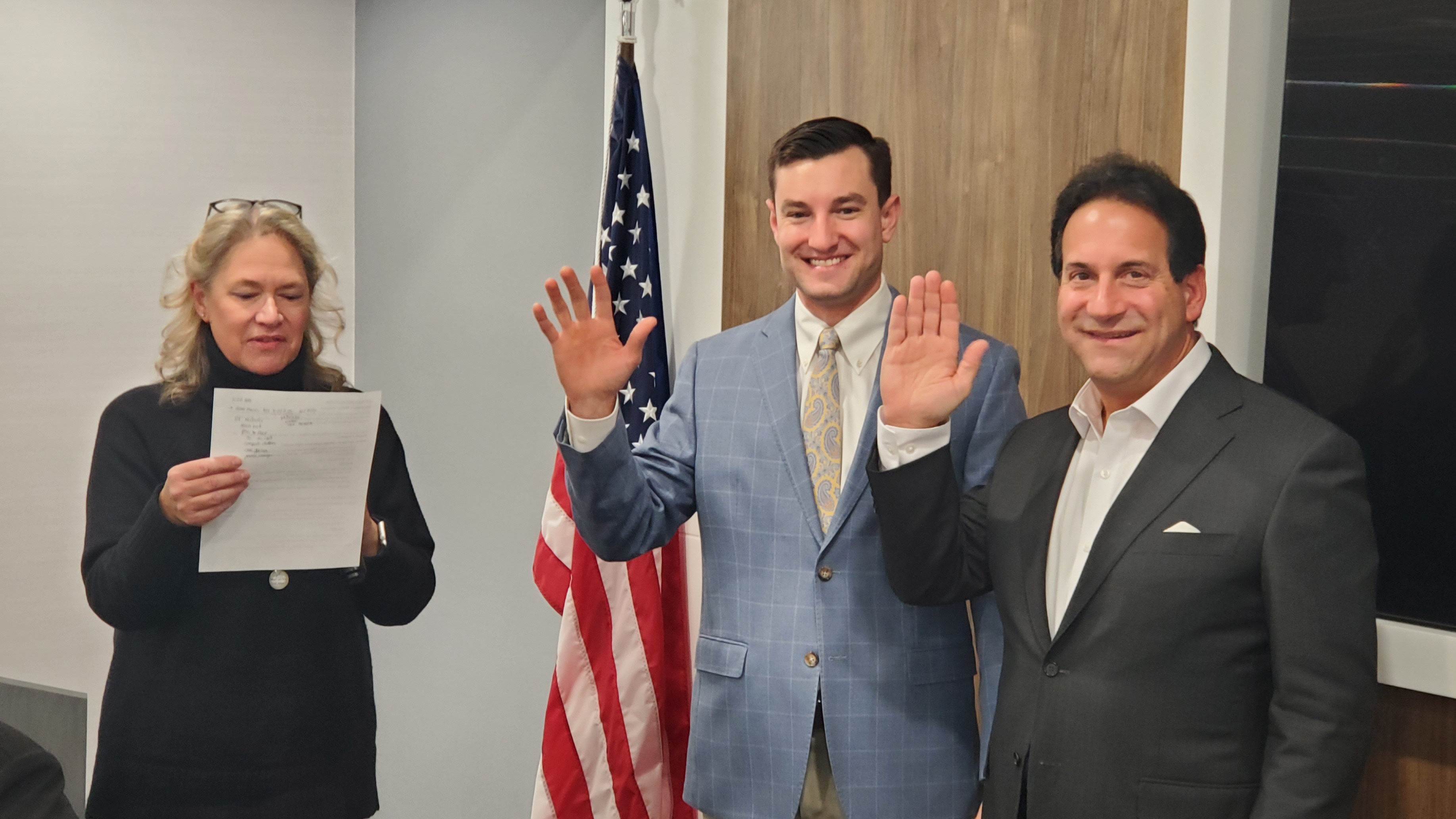 2026 SCDS President-Elect Dr. Devin Klein (center) and Dr. Steven Feigelson (right) are sworn in by Dr. Claudia Mahon-Vazquez (left)