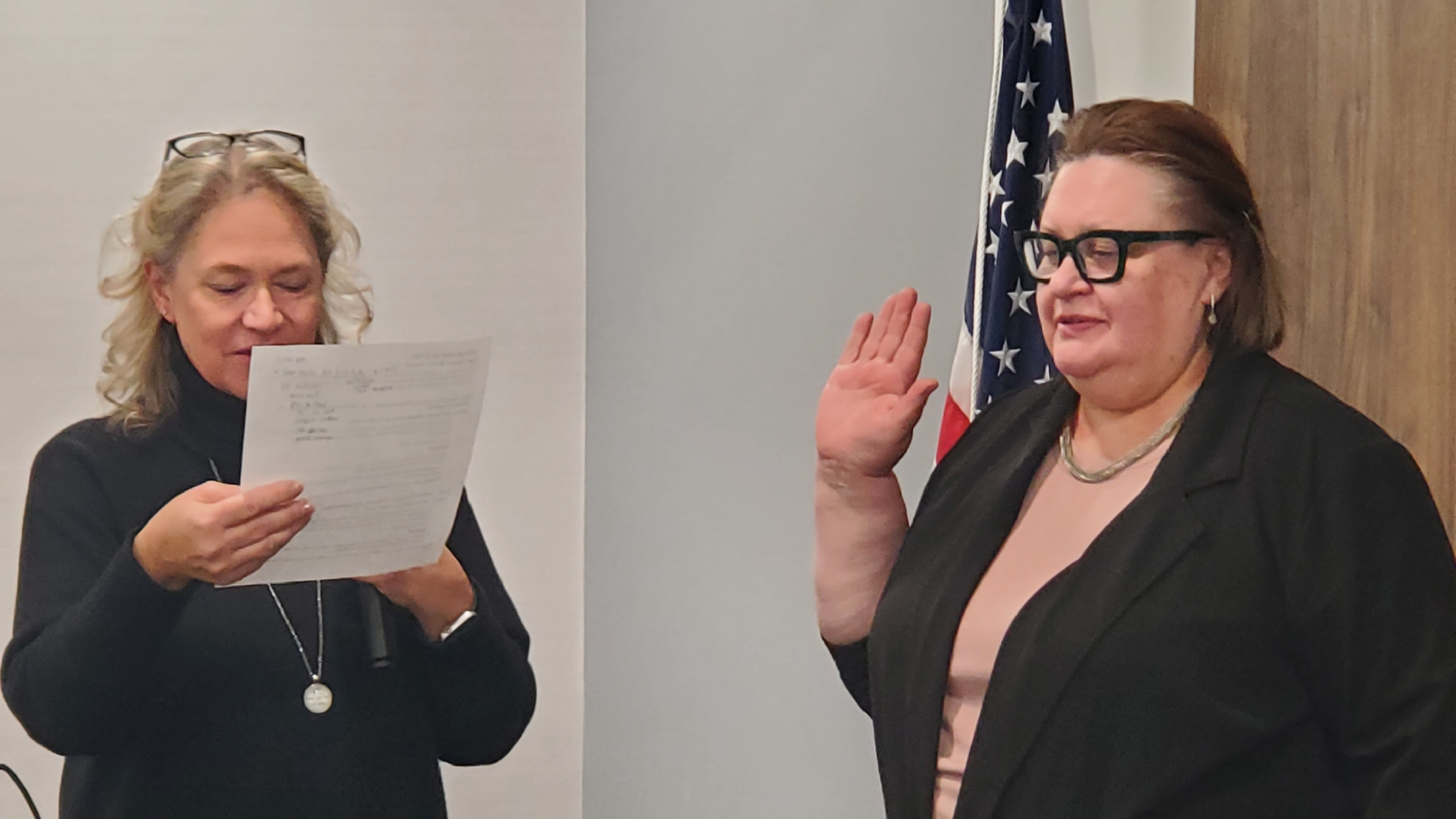 2026 SCDS President Dr. Natalia Elson (right) is sworn in by Dr. Claudia Mahon-Vazquez.